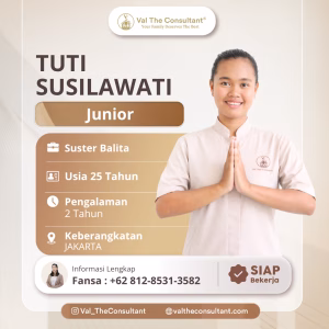 Suster Faizah asal Jawa Timur, berusia 27 tahun, merupakan suster balita anggota lama Val The Consultant dengan pengalaman 4 tahun di 1 majikan. Berpengalaman dalam merawat serta mendampingi tumbuh kembang anak dengan penuh kasih sayang dan tanggung jawab.