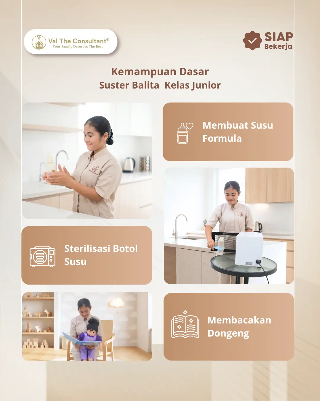Memiliki kemampuan dalam memandikan dan memberi makan anak, mendampingi anak bermain serta belajar, membuat susu formula, dan melakukan sterilisasi botol susu dengan baik. Selain itu juga dapat mendampingi anak saat belajar online serta mampu memasak makanan sederhana untuk kebutuhan anak.